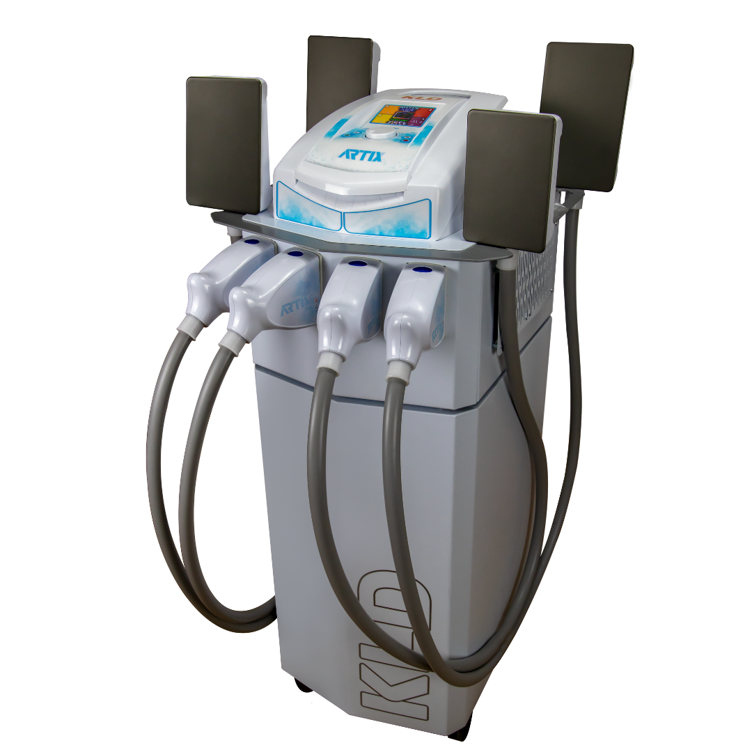 Criolipólise de placas mais premiada no Brasil com entrega real de temperatura e precisão no controle. O equipamento Artix é mais uma tecnologia desenvolvida sob o mais alto padrão de fabricação e rigor científico, que é marca registrada KLD Biosistemas. Conta com 5 opções de aplicadores, de difentes tamanhos, que permitem a aplicação de forma estática ou dinâmica.